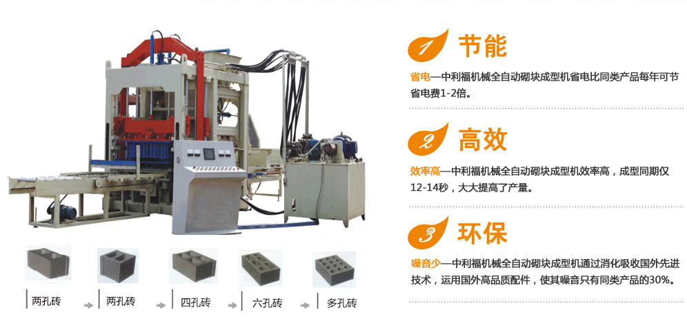 技術決定品質—中利福機械有限公司經多年研發,國內首創多功能中型系列磚機,一機多用,既可生產不同規格型號的墻體磚,也可生產不同規格的路面磚,空心磚、護坡磚、灰沙磚、耐火磚等。
